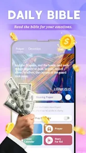 Daily Study Bible - Earn Real Money är en unik app som kombinerar andlig tillväxt med möjlighet till ekonomiska belöningar. Appen erbjuder dagliga bibelläsningar som syftar till att inspirera och ge vägledning. Användare kan börja varje dag med att läsa utvalda passager och få insikter som kan berika deras tro. Dessutom innehåller appen engagerande quiz som testar användarens kunskaper om de lästa texterna, vilket gör inlärningen både rolig och interaktiv.